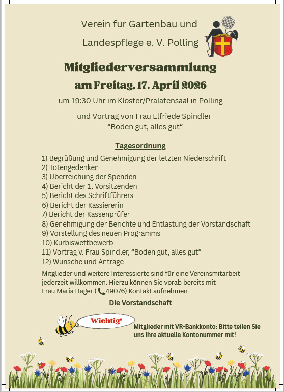 17. April 2026 – Jahreshauptversammlung des Pollinger Gartenbauvereins